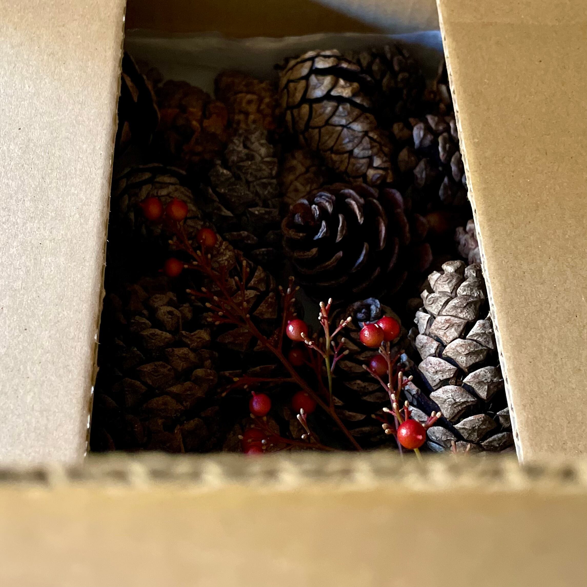 八ヶ岳西麓の標高1000〜1300mに生息する、アカマツから落ちてきた松ぼっくりです。