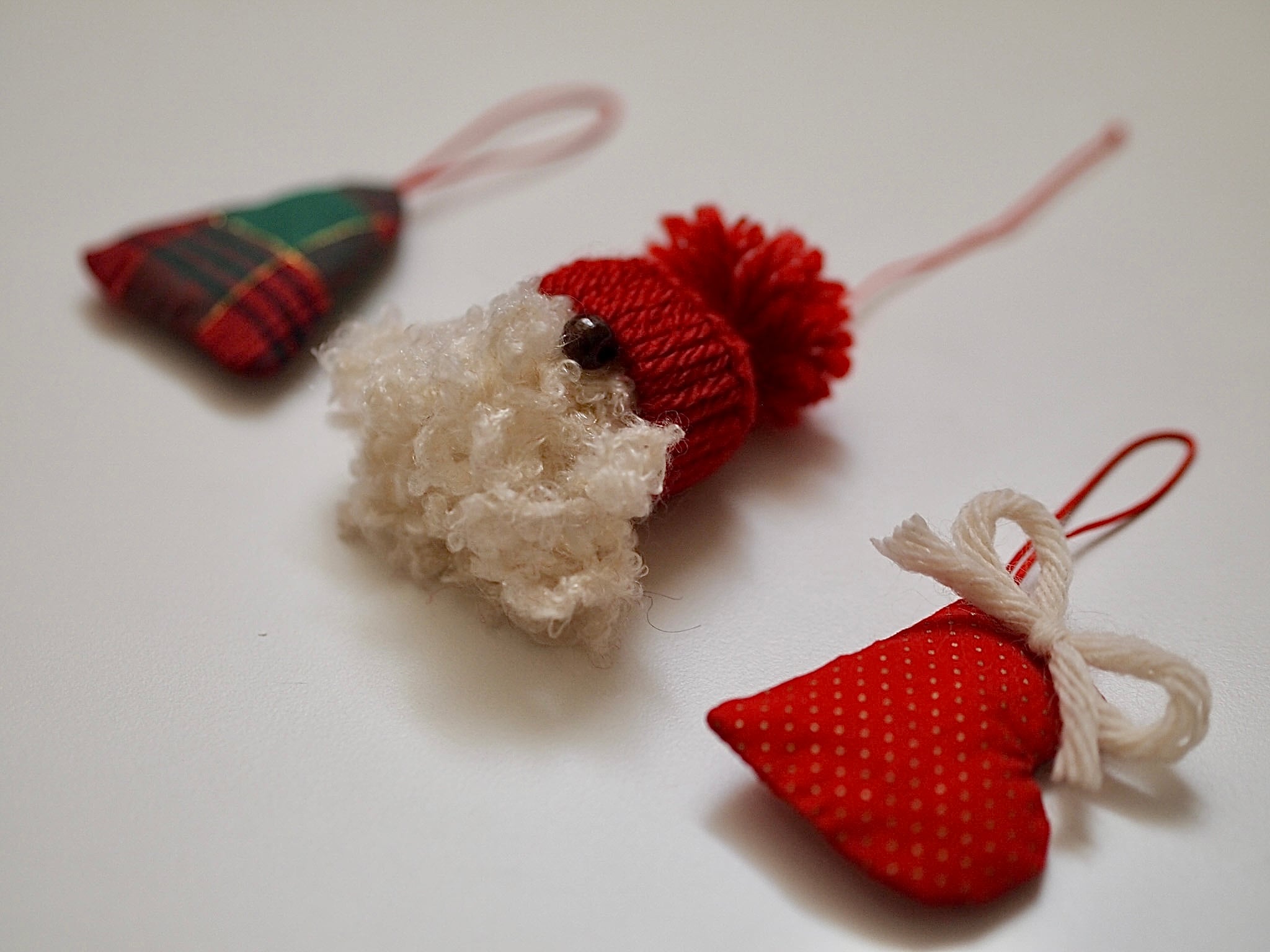 手作りの柔らかな雰囲気のサンタ、ツリー、ハートブーツのセットです。