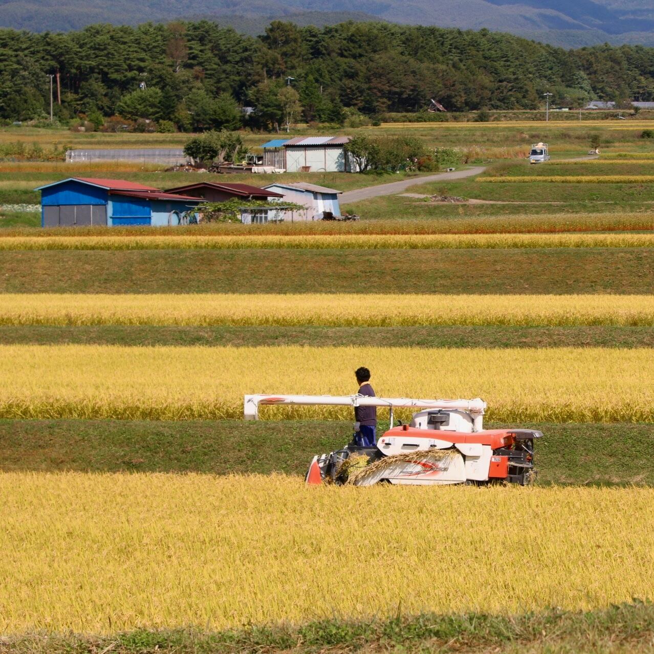 標高1100mの休耕地に生えてくる野生の蕗と、エコーライン沿の田圃で採れたお米。