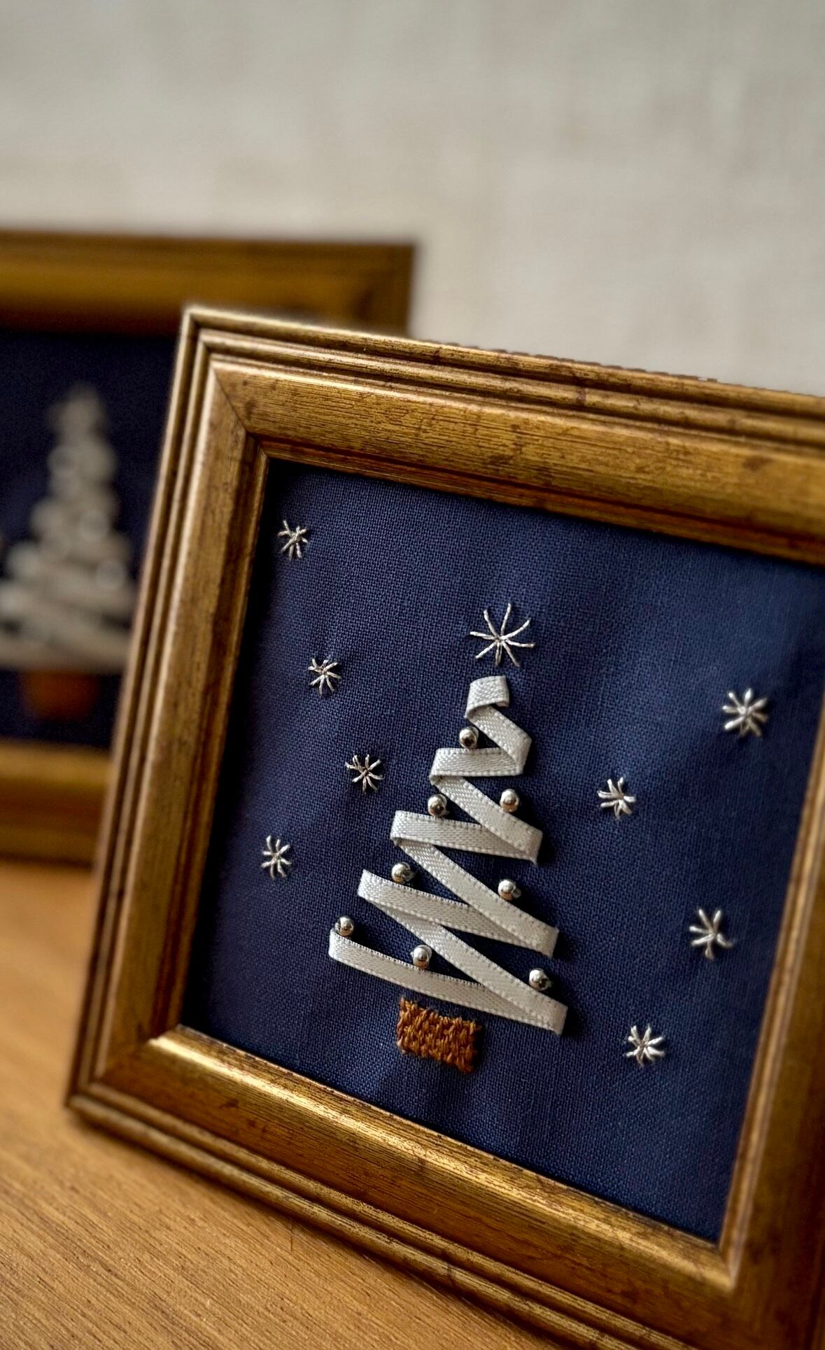 八ヶ岳の樅の木をモチーフにしたハンドメイドフレーム。樅木のカタチをリボンで表現しました。